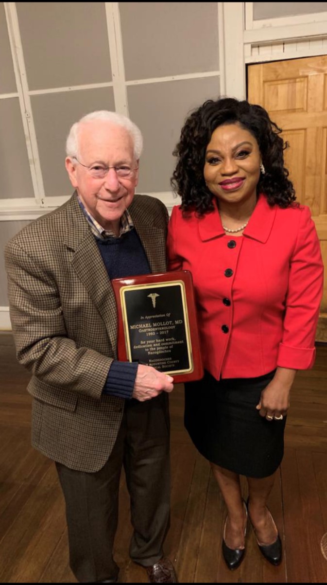 The Nacogdoches San Augustine Medical Society honored retiring member Dr. Ed Ferren (1987-2025) for his hard work, dedication, and commitment to the people of Nacogdoches and the surrounding counties. He was presented with a plaque recognizing his service and a portrait of himself. Pictured is Dr. Ed Ferren and Dr. Modupe Sokunbi.